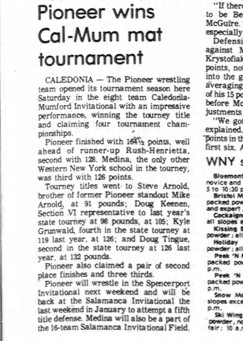 13th Annual Caledonia-Mumford Christmas Wrestling Tournament