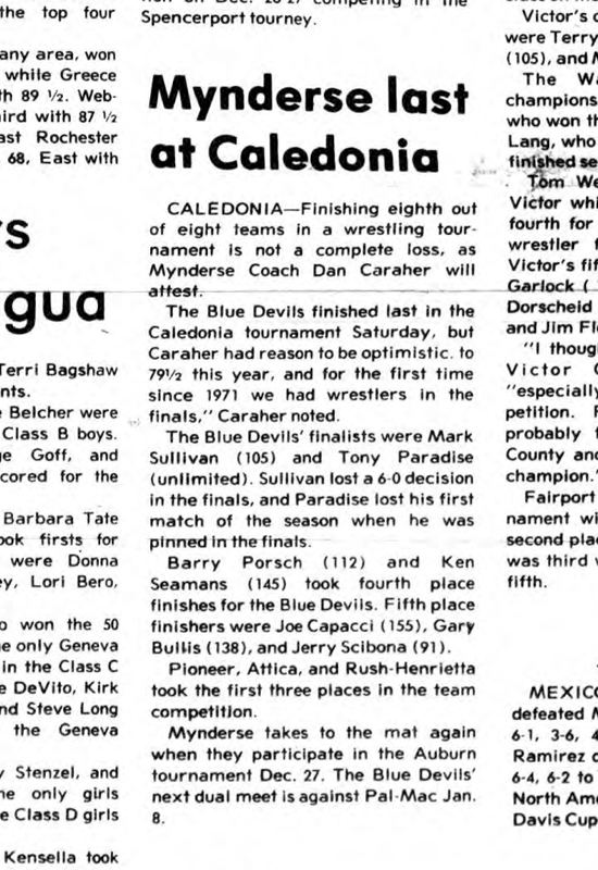 P. Capone (Watertown) > Barry Porsch (Mynderse) decision 3-0