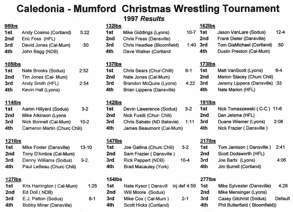 22nd Annual Caledonia-Mumford Christmas Wrestling Tournament
