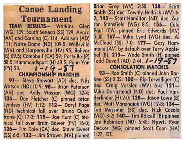 Rip Terwilliger (Corning) > Craig Vossler (Wellsville) decision 6-4
