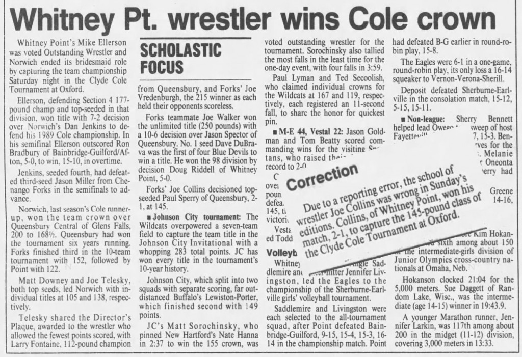 Joe Collins (CF) > Paul Sperry (Queensbury) decision 2-1