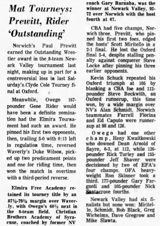 Christian Brothers Academy [NY] 92, Norwich [NY] 72, Corning West [NY] 68.5, Newark Valley [NY] 67, Port Byron [NY] 46, Union Springs [NY] 25, Savona [NY] 16, Tioga [NY] 14