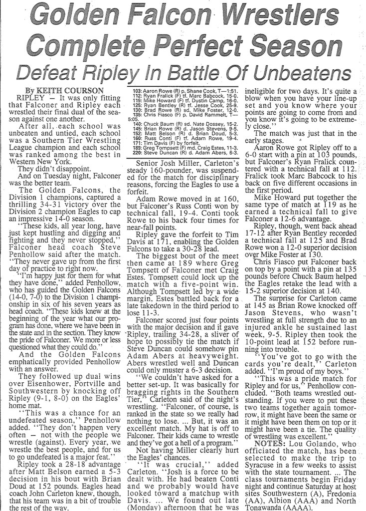 Russ Conti (Falconer) > Adam Rowe (Ripley) technical fall 19-4