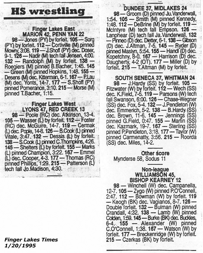 Vern Brewer (Mynderse) > Aaron Colern (Sodus) fall 4:21