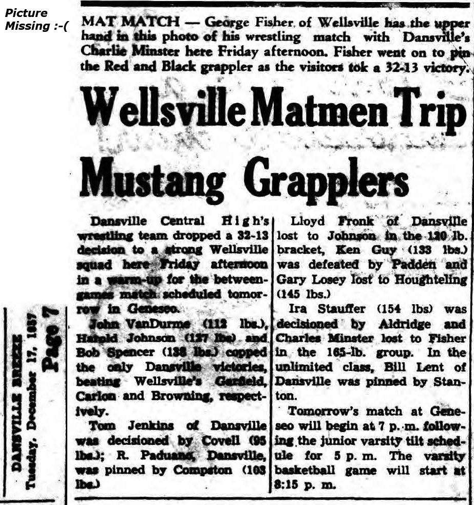 Harold Johnson (Dansville) > Carlin (Wellsville) fall