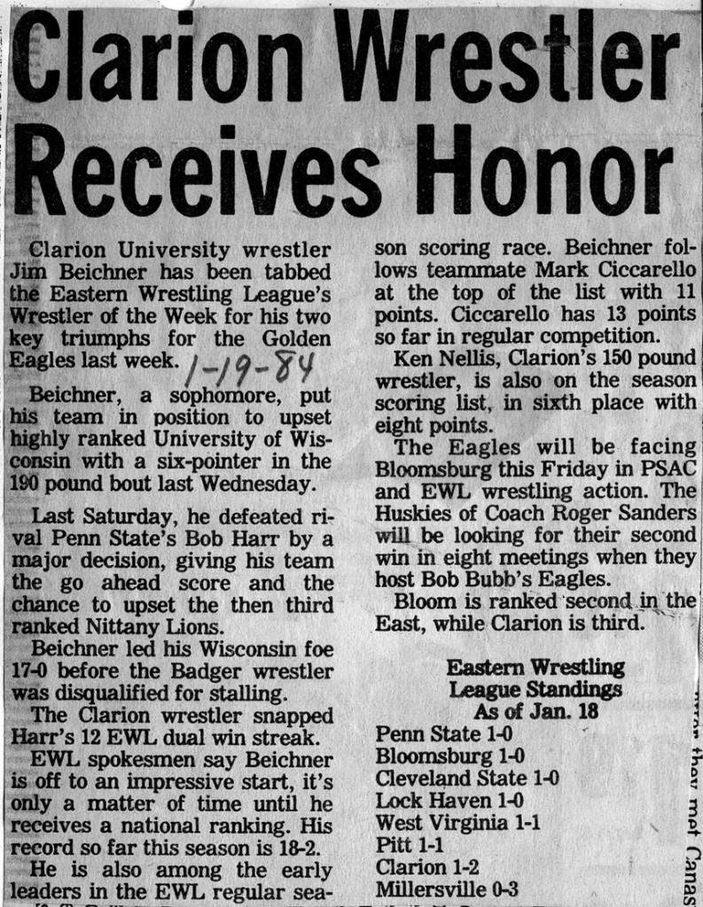 Jim Beichner (CU) > Bob Harr (PSU) major decision 13-5