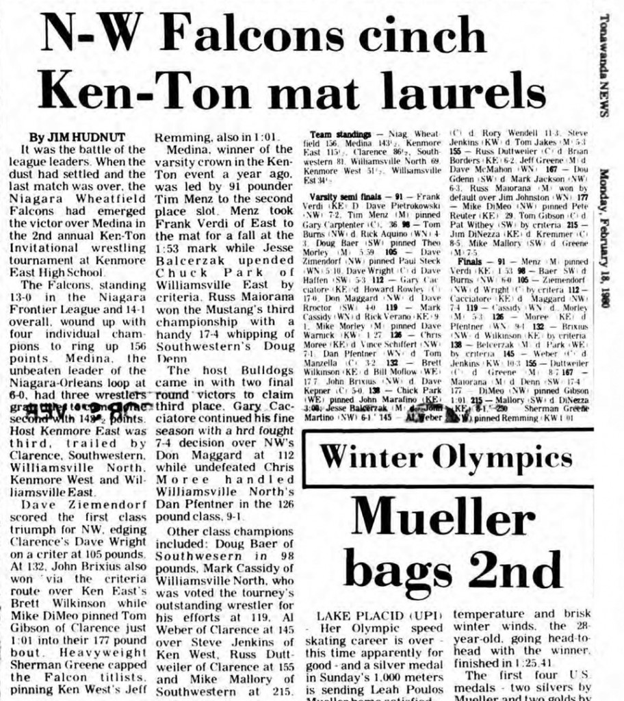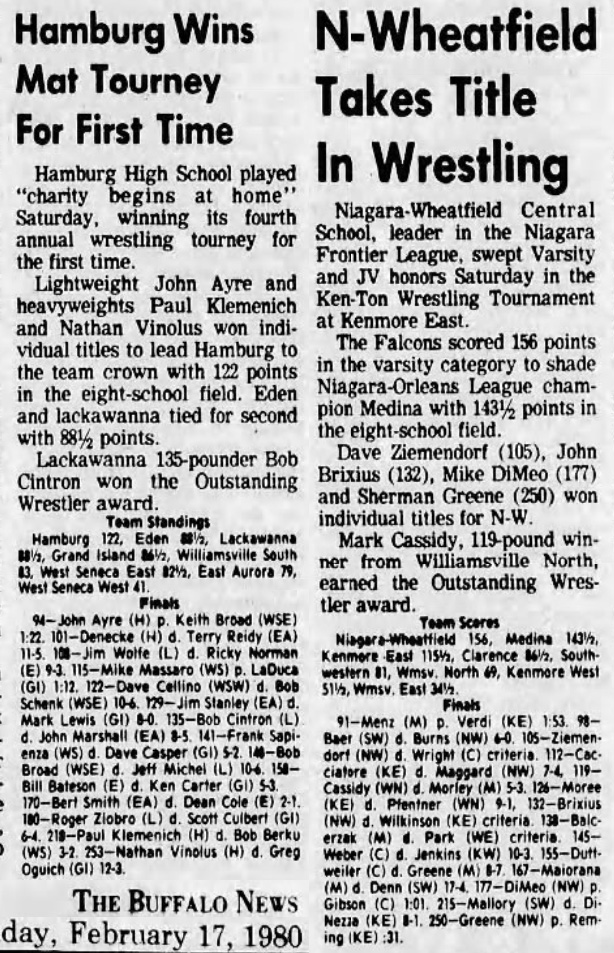155 Rodney Duttweiler (Clarence) > Jeff Greene (Medina) decision 8-7