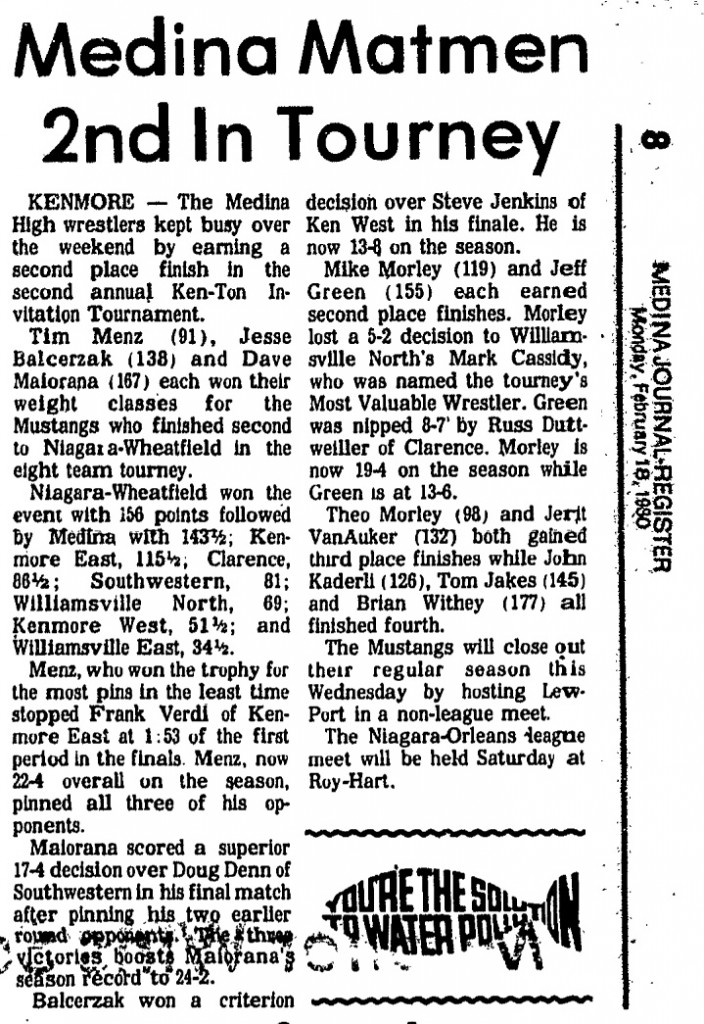 91 Tim Menz (Medina) > Frank Verdi (KE) fall 1:53