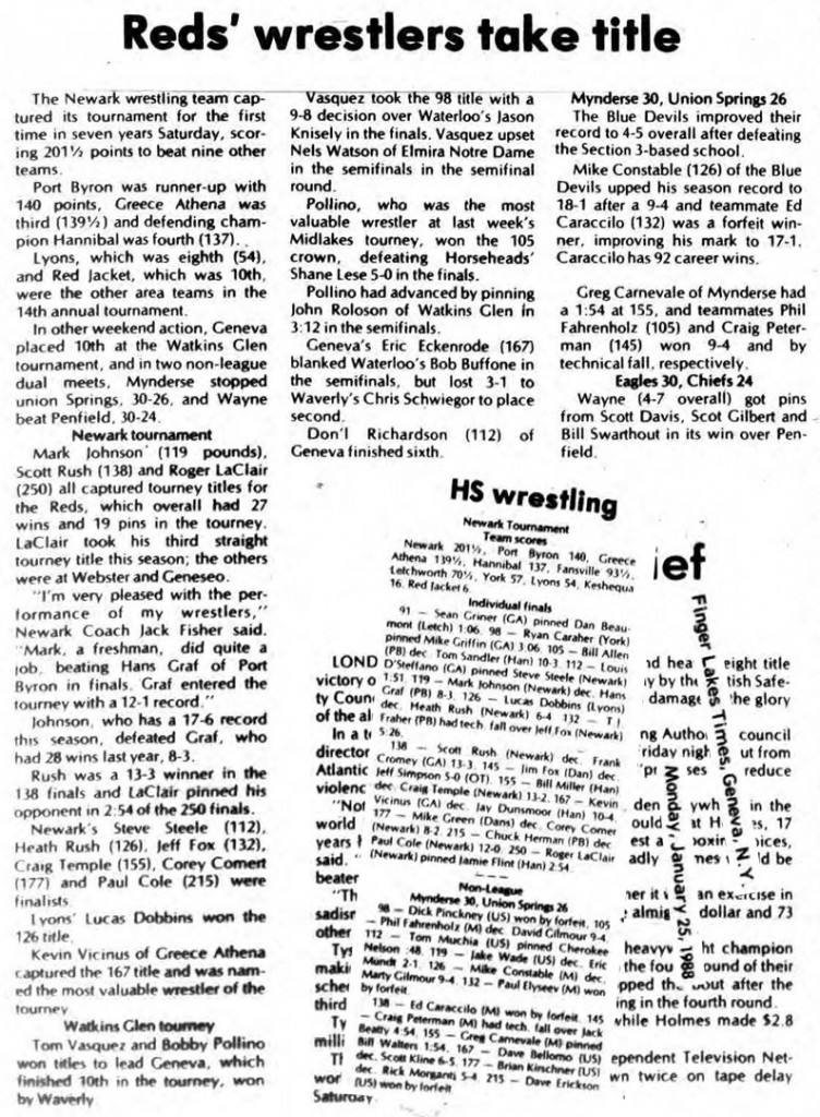 Roger Laclair (Newark) > Jamie Flint (Hannibal) fall 5:00