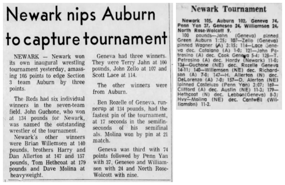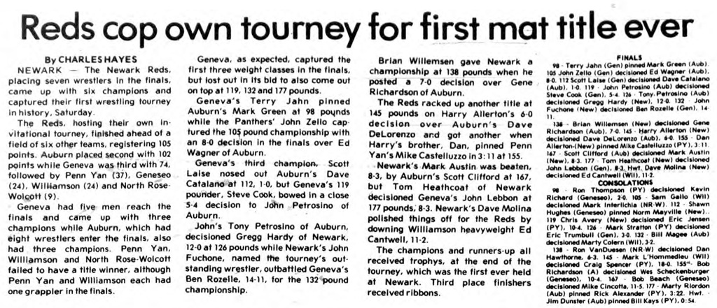 Newark [NY] 105, Auburn [NY] 102, Geneva [NY] 74, Penn Yan [NY] 37, Geneseo [NY] 24, Williamson [NY] 24, North Rose-Wolcott [NY] 9