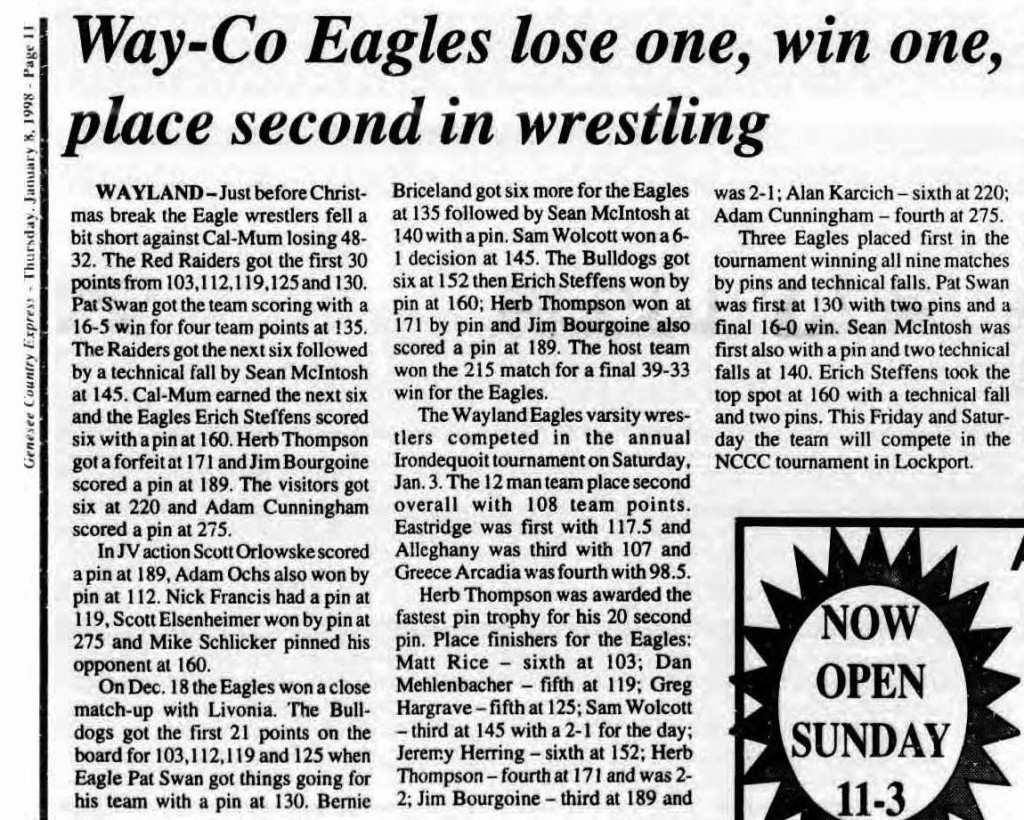 Sabin Hoad (Hammondsport) > Josh Crisafulli (AL) decision 6-4