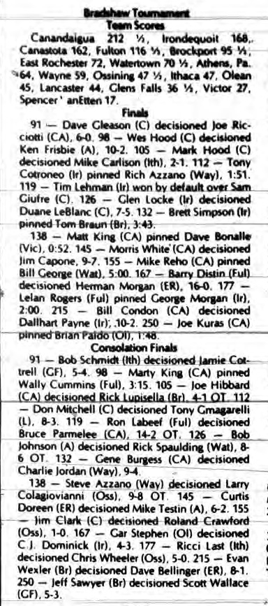 Wes Hood (Canastota) > Ken Frisbie (Athens) major decision 10-2