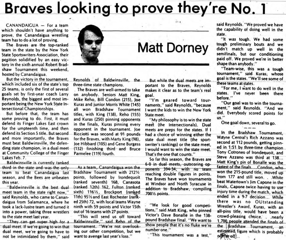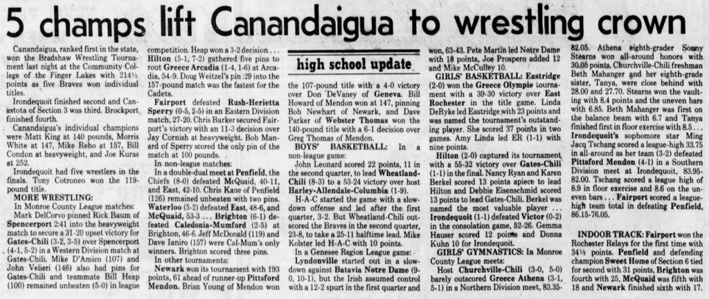 Bill Condon (Canandaigua) > Dallhart Payne (Irondequoit) major decision 10-2