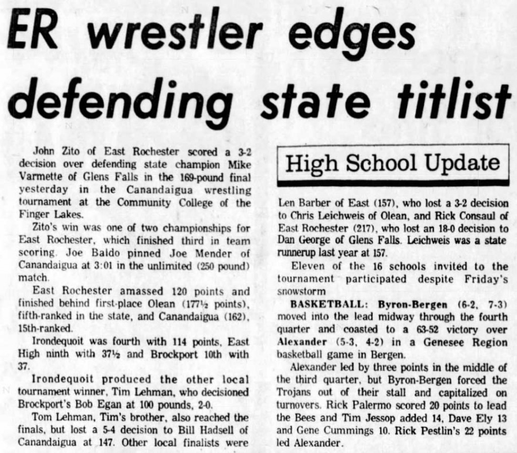 Tim Lehmann (Irondequoit) > Robert Egan (Brockport) decision 2-0