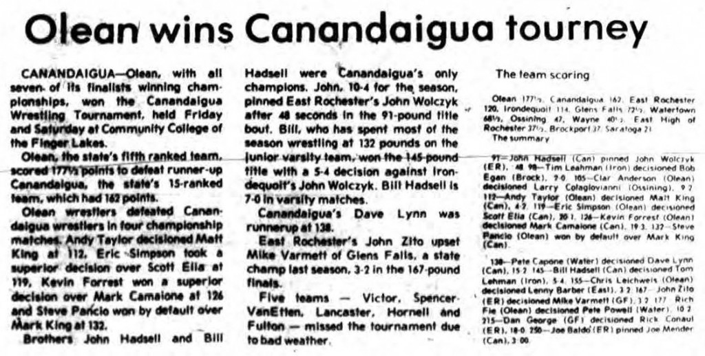 Kevin Forrest (Olean) > Mark Camaione (Canandaigua) superior decision 19-3
