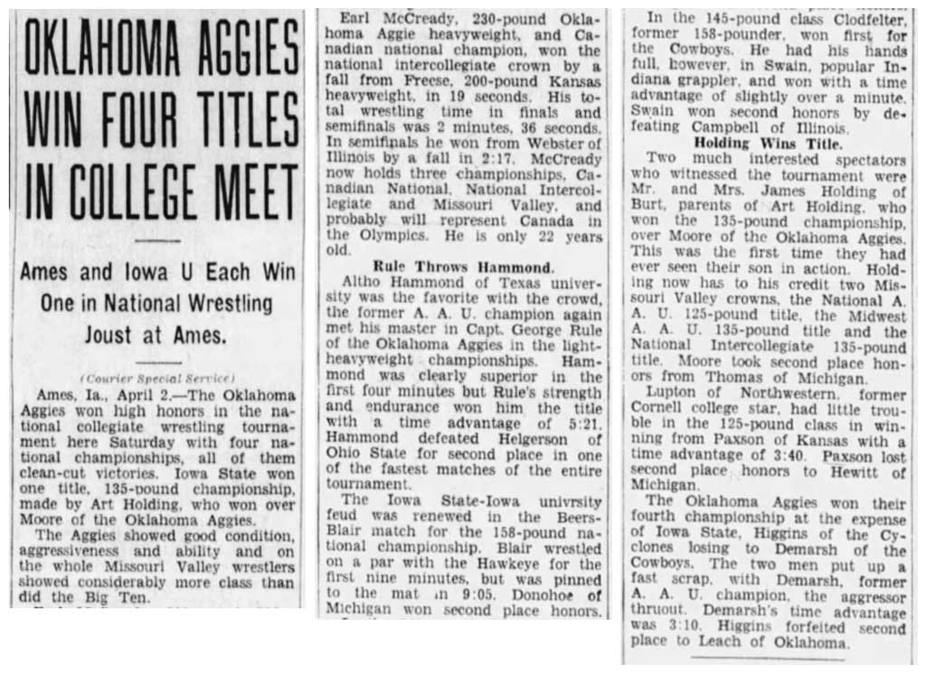 Harold DeMarsh (OSU (Oklahoma A&M)) > Harold Higgins (ISU) time advantage decision 3:10
