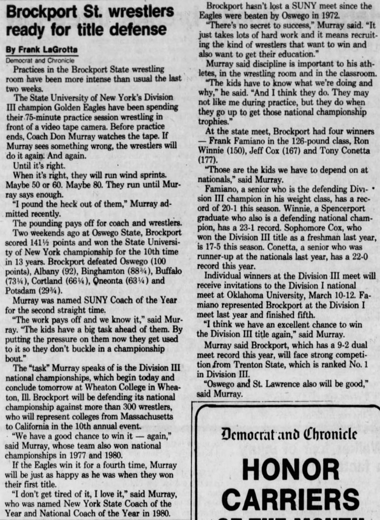 Jeff Cox (Brockport) > Guy Ventura (HC) decision 4-2