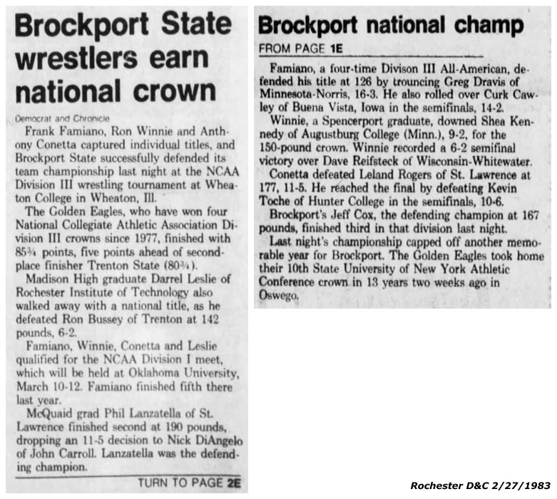 Ron Winnie (Brockport) > Martin Butler (AC) major decision 10-2