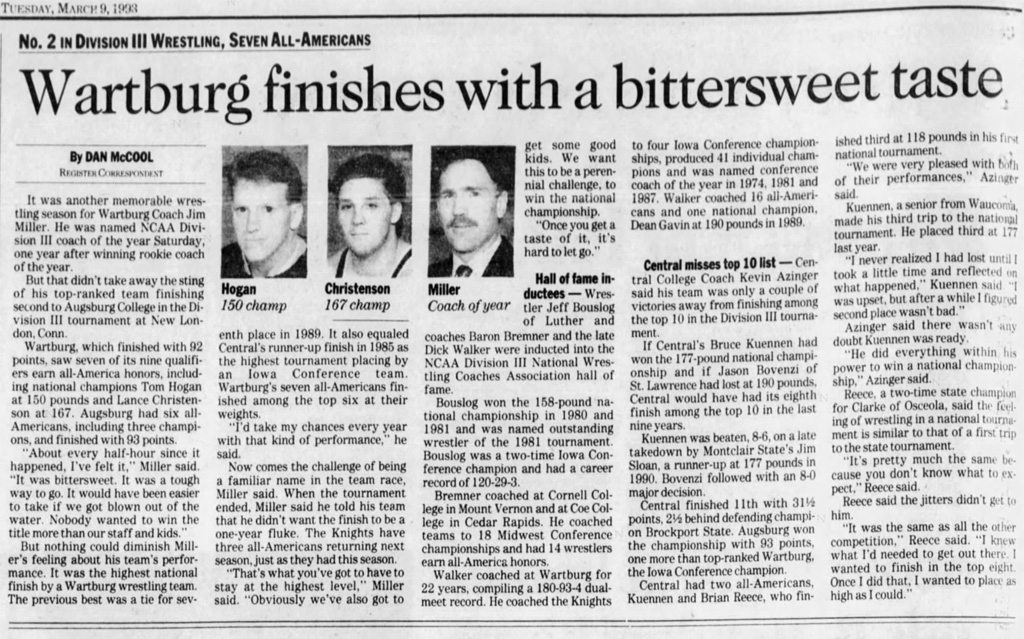 Jim Sloan (MSU) > Bruce Kuennen (UIU) decision 8-6