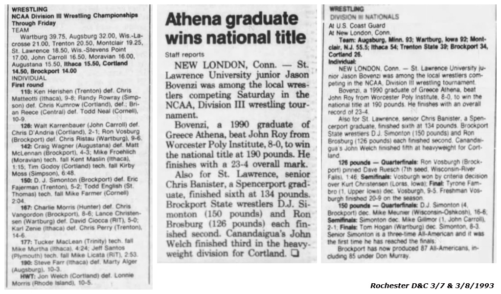 Kent Maslin (IC) > Tim Godoy (Cortland) forfeit