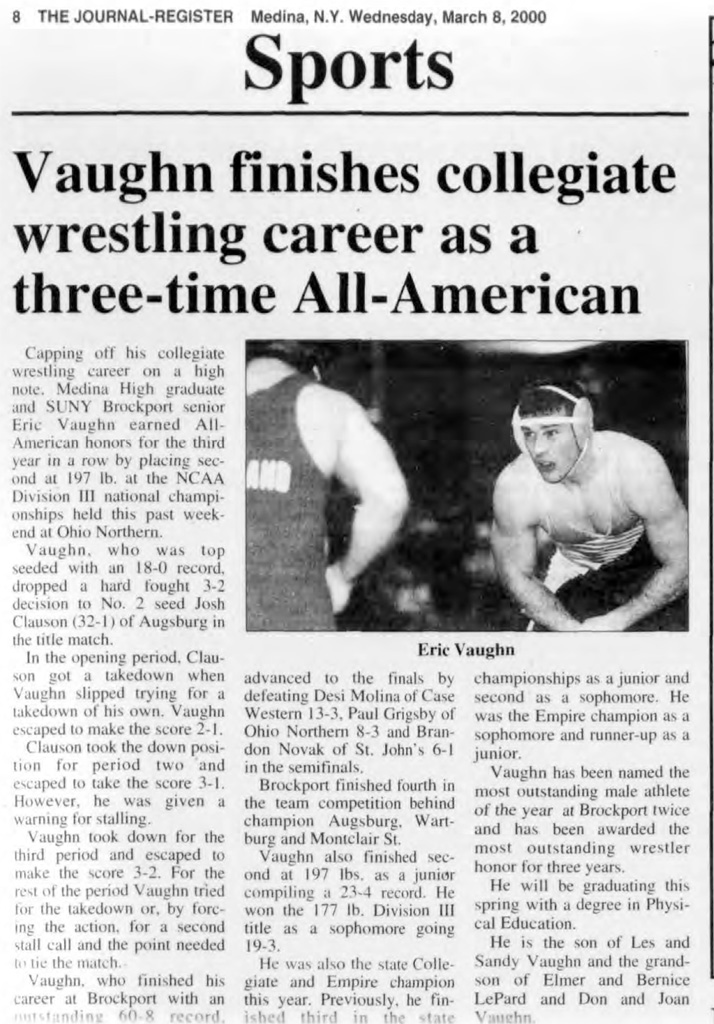 Josh Clausen (AC) > Eric Vaughn (Brockport) decision 3-2