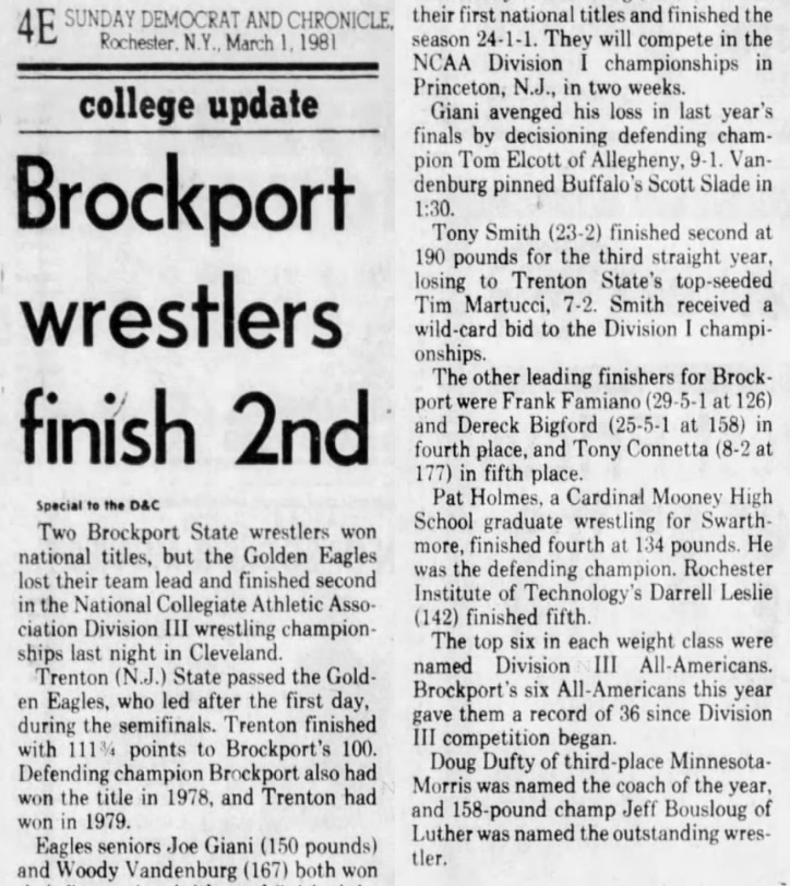 Anthony Conetta (Brockport) > Warren Robertson (DVC) major decision 11-3