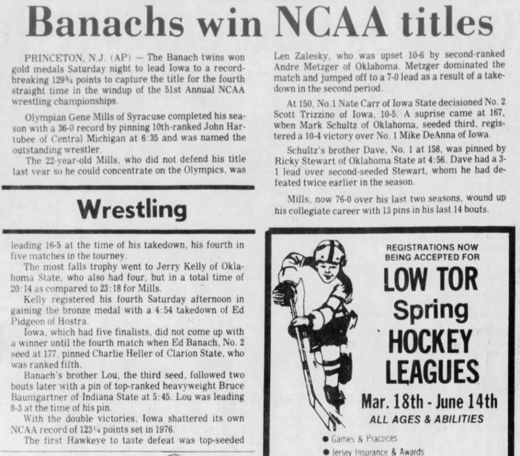Lou Banach (UI) > Bruce Baumgartner (ISU) fall 5:45