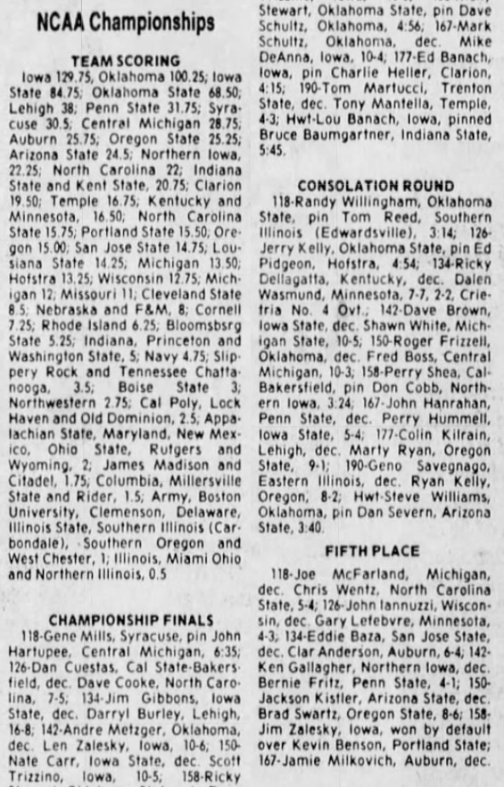 John Hanrahan (PSU) > Perry Hummel (ISU) decision 5-4