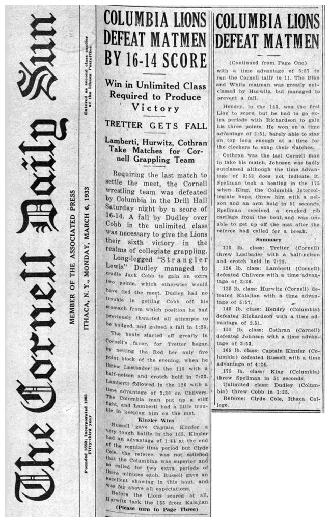 Columbia University 16, Cornell University 14
