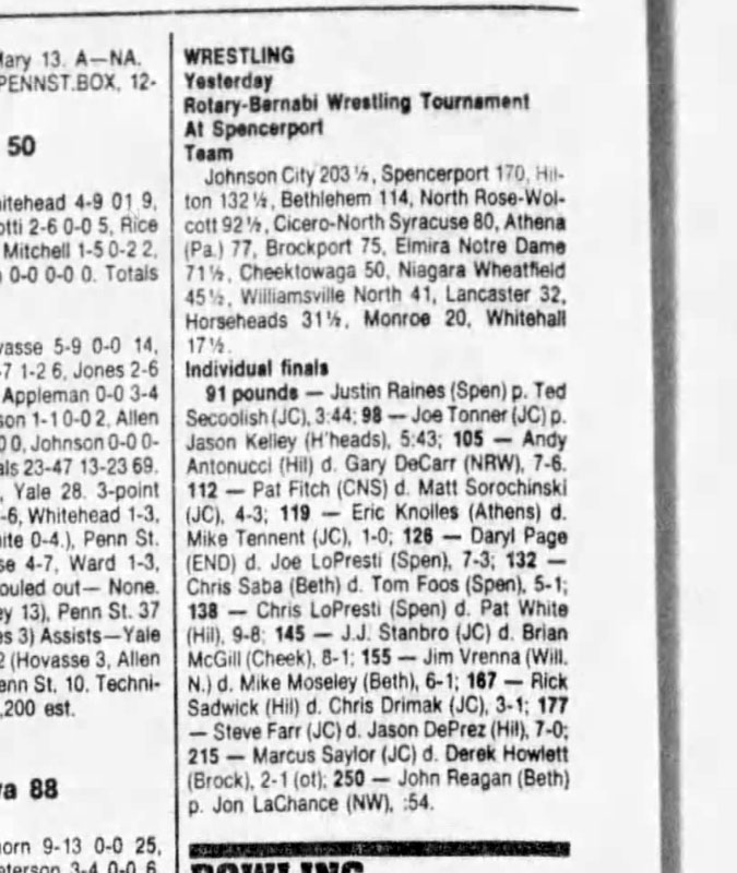 Daryl Page (END) > Joe LoPresti (Spencerport) decision 7-3
