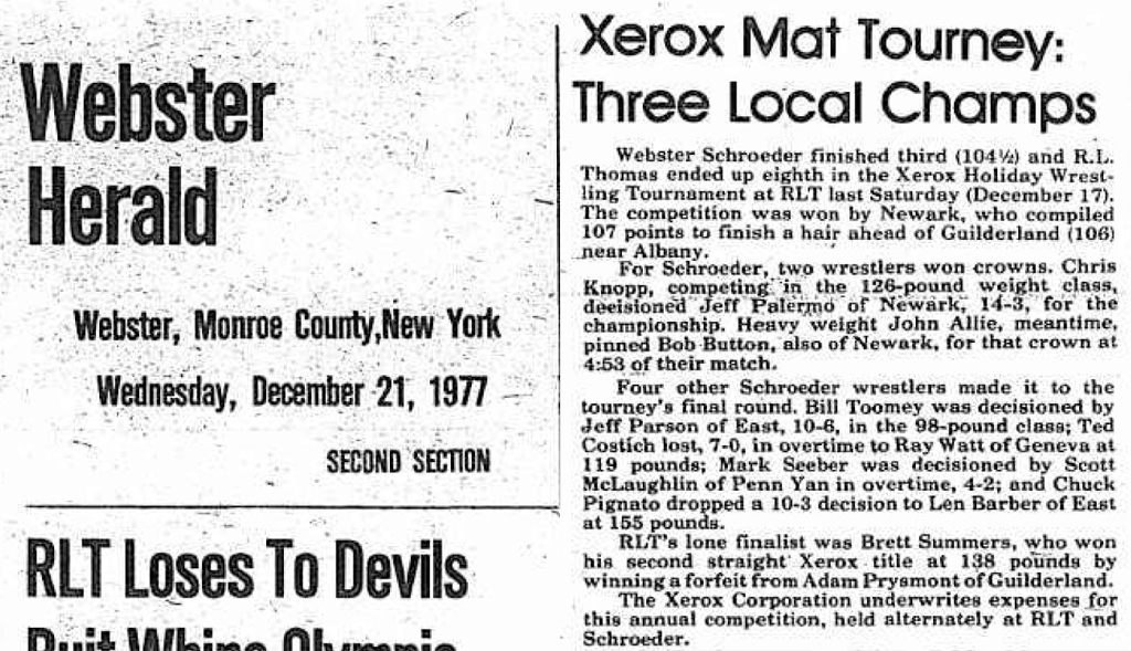 12th Annual Xerox/Webster Invitational Wrestling Tournament