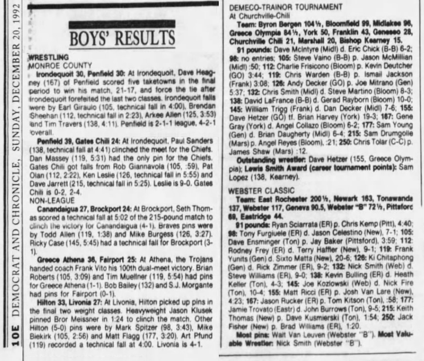 Joe Kozlowski (Webster) > Nick Fire (Tonawanda) decision 10-4