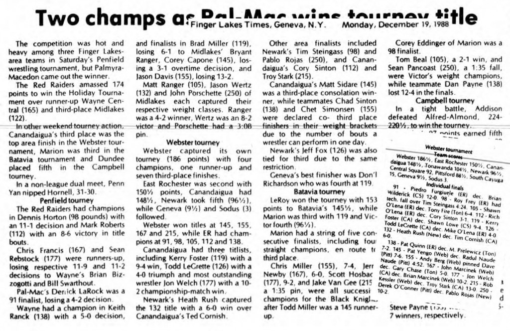 Rob Kessler (Webster) > Troy Stark (Canandaigua) major decision 13-0