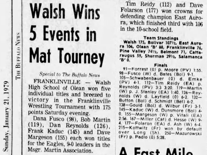 Steve Mazurowski (Franklinville) > Brian Padlo (Olean (B Team)) fall 5:28