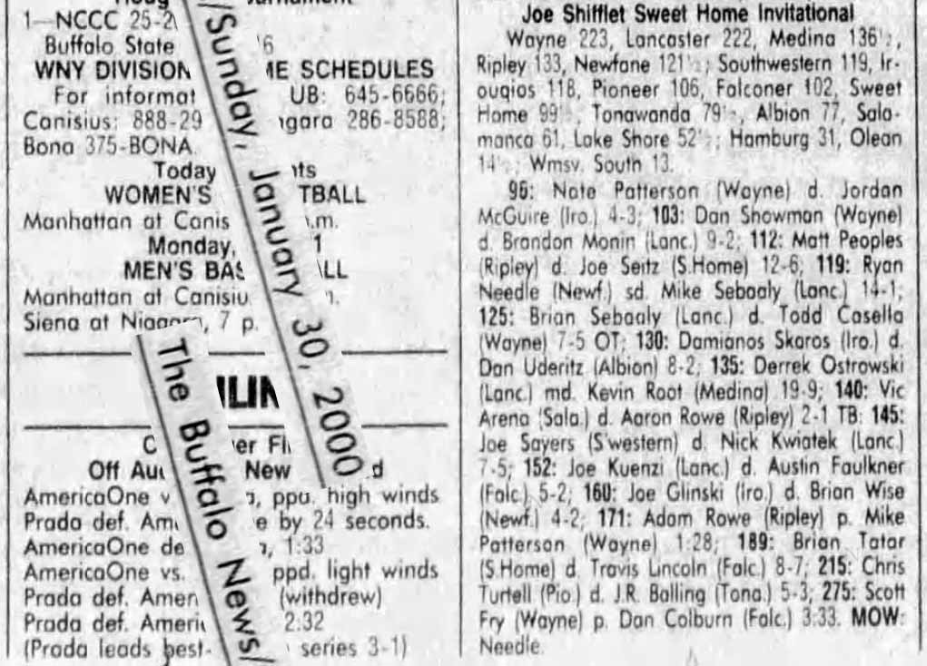 Corey O'Neil (Salamanca) > Jay Yachetta (Falconer) decision 4-2