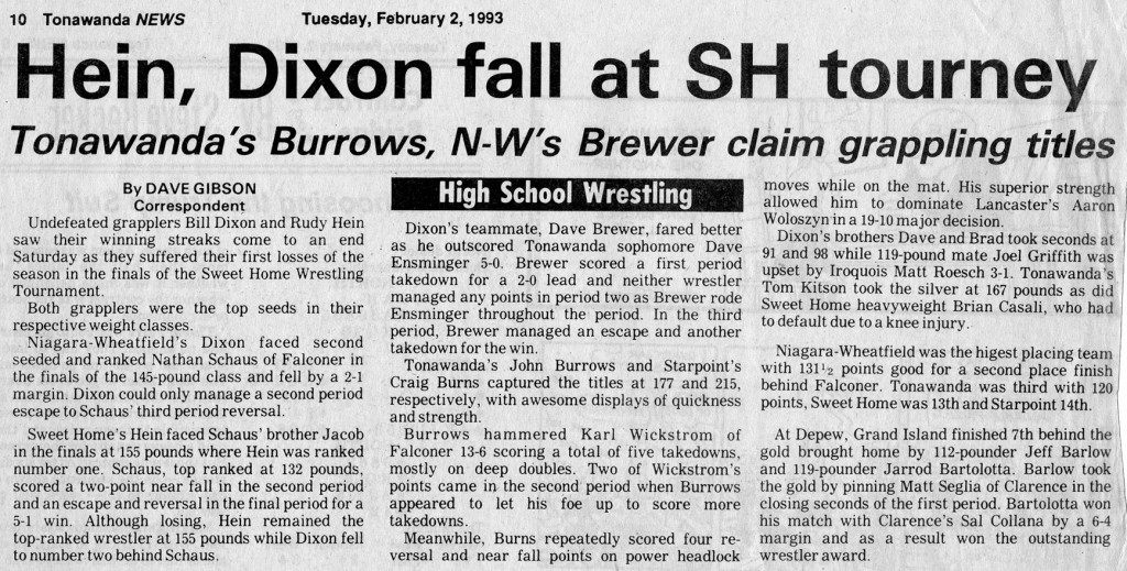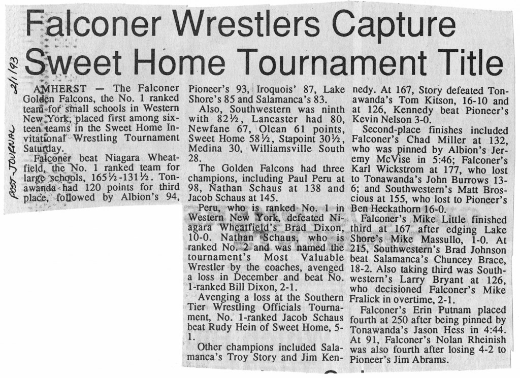 Nathan Schaus (Falconer) > Bill Dixon (NW) decision 2-1