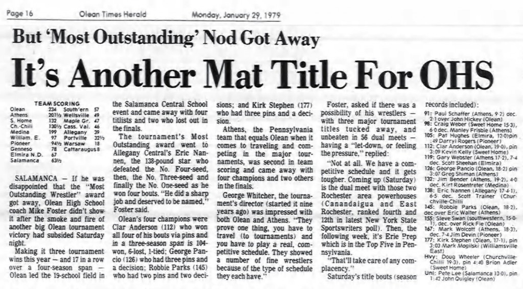 Kirk Stephen (Olean) > Mark Mogilski (WE) fall 3:03
