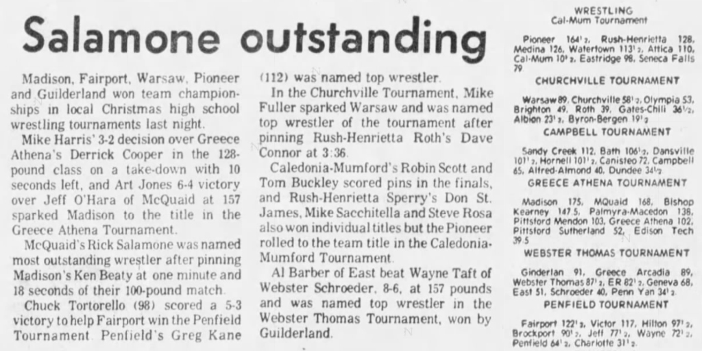 Roy Lang (Wayne) > Mike Stuver (Fairport) decision 9-2