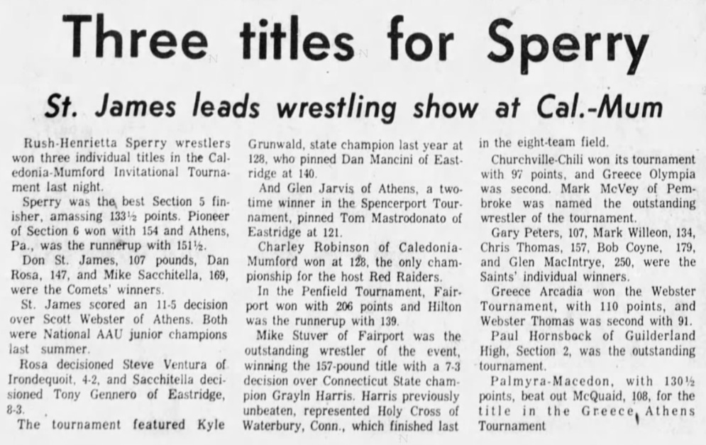 Dave Dorsey (Penfield) > Mike Lennon (Fairport) decision 3-1