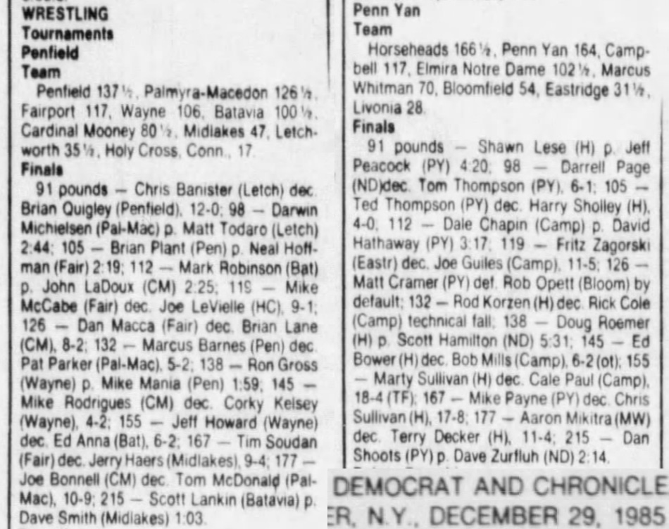 Mike McCabe (Fairport) > Joe LeVielle (HC) major decision 9-1