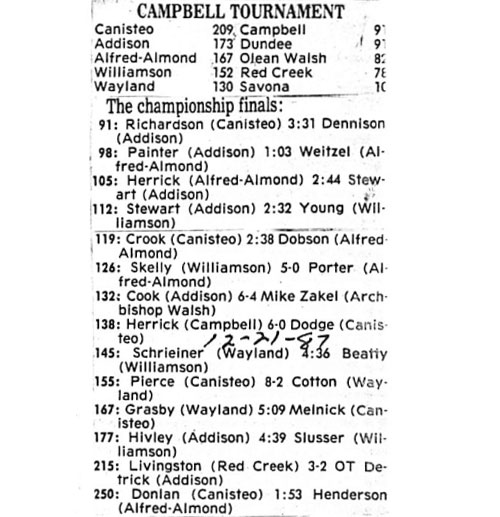 Scott Herrick (Campbell) > Phil Dodge (Canisteo) decision 6-0