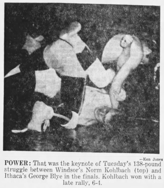 Norm Kohlback (Windsor) > George Blye (Ithaca) decision 6-4