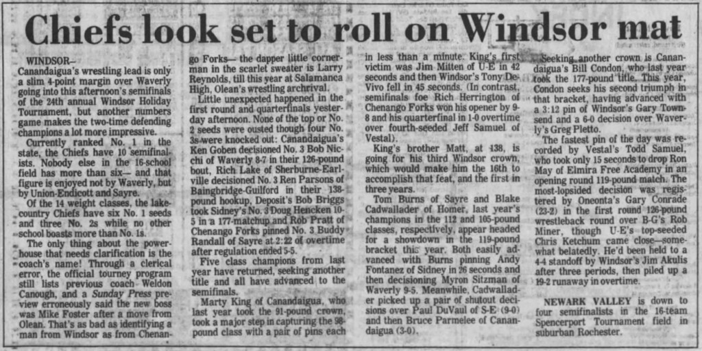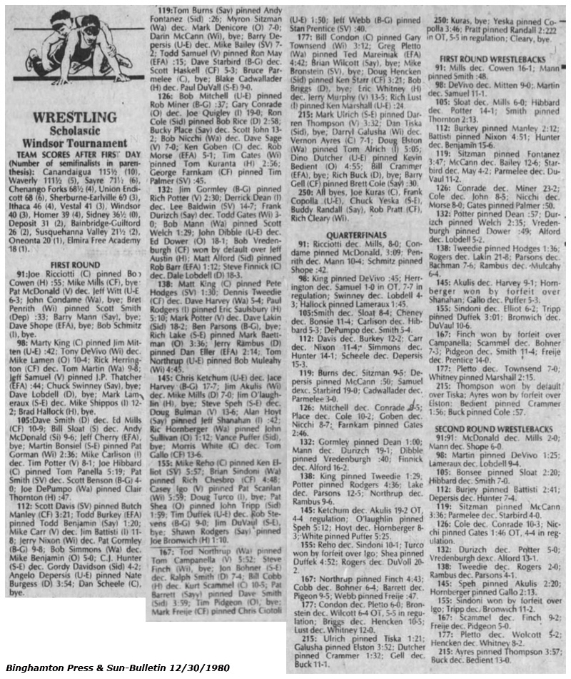 Bob Nicchi (Waverly) > Ken Goben (Canandaigua) decision 9-2
