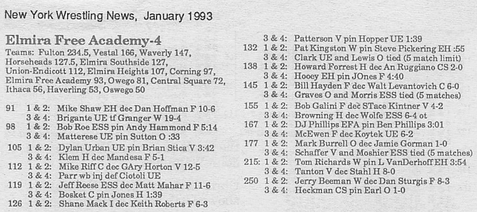 Mike Riff (Corning) > Gary Horton (Vestal) decision 12-5