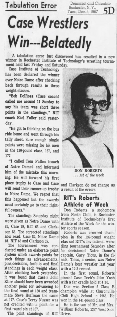 Don Roberts (RIT) > Gary Ticus (UND) decision 4-1