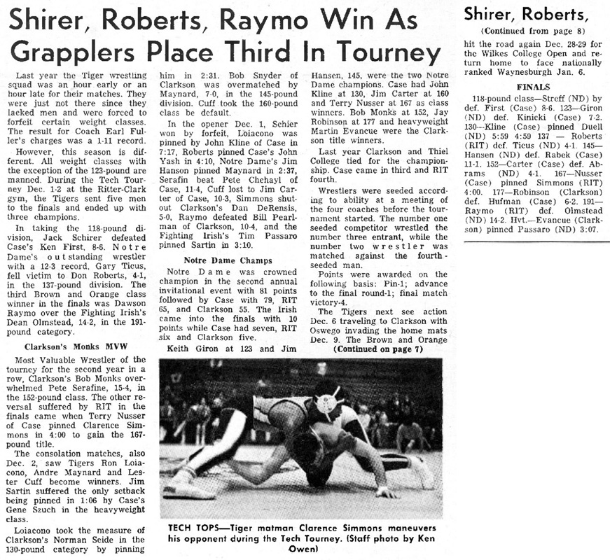 Terry Nusser (CIT) > Clarence Simmons (RIT) fall 4:00
