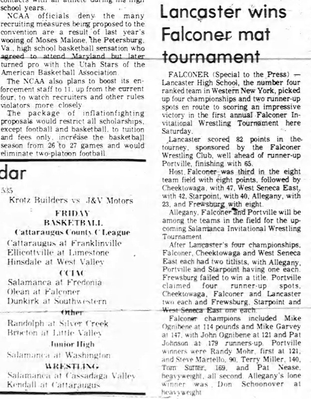 1st Annual Falconer Invitational Wrestling Tournament