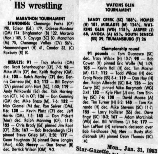 Bob Cowen (Homer) > Eric Wolfe (Midlakes) fall 1:09