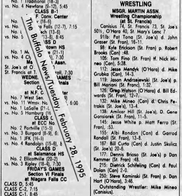 Mike Mineo (Canisius) > Chris Petrakis (SJ) major decision 13-4