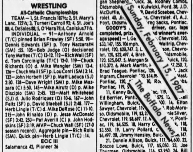 138 Dave Wright (SML) > Michael Mazzara (Canisius) fall 5:50